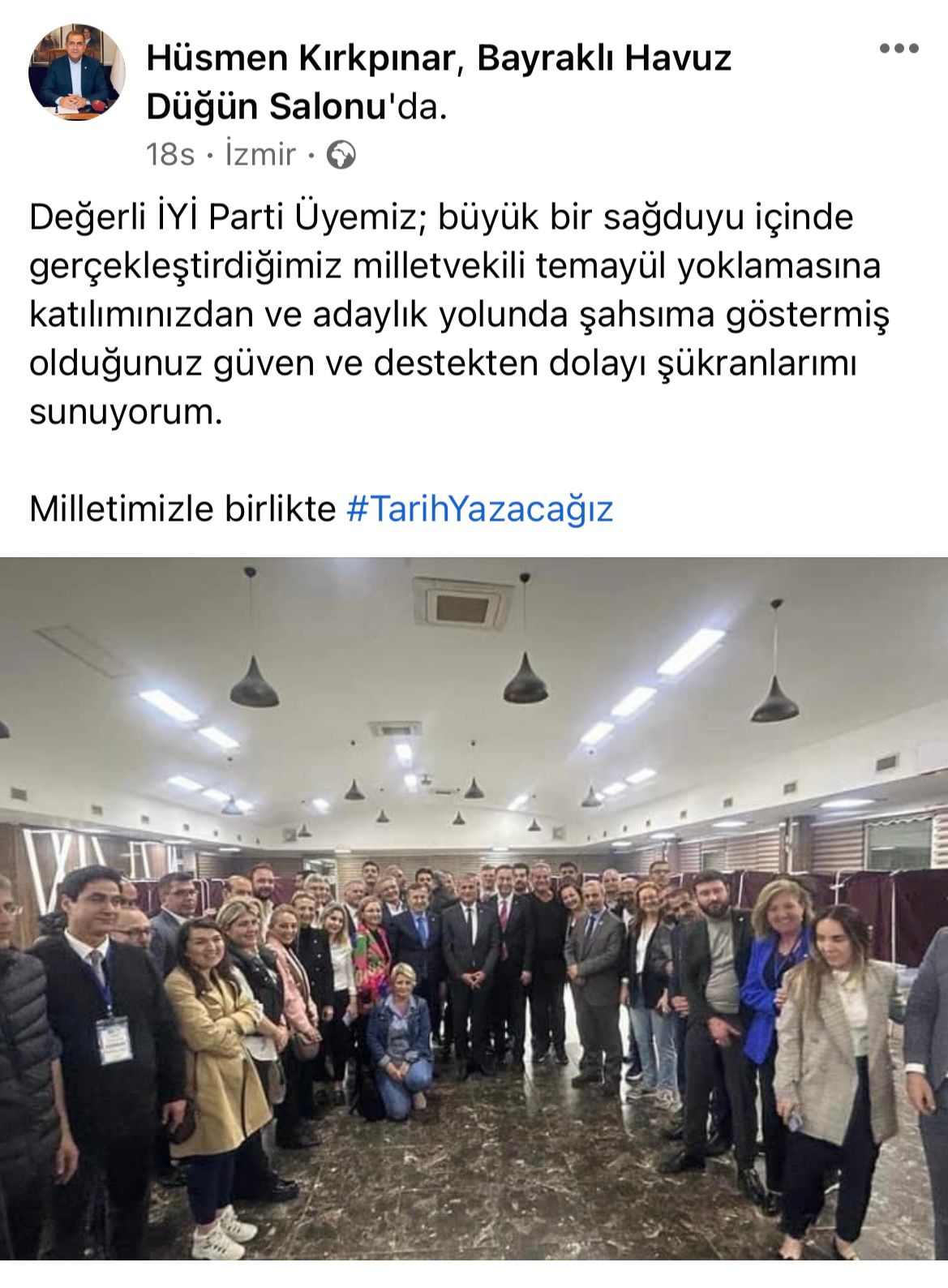 Çiğdem CANPOLAT / AGORA MEDYA - İYİ Parti, milletvekili aday listelerinin belirlenmesi için 15 ilde temayül yoklamasına gitti. Bu kapsamda yaklaşık 28 bin üyeye sahip olan İYİ Parti İzmir Teşkilatı de geçtiğimiz pazar günü temayül yoklamasını gerçekleştirdi.Yoklamada 2. Bölgeden İYİ Parti İzmir önceki dönem İl Başkanı Hüsmen Kırkpınar birinci, Arzu Yıldırım ikinci, Tamer Cücü ise üçüncü sırada çıktı.KIRKPINAR: GÖSTERMİŞ OLDUĞUNUZ GÜVEN VE DESTEKTEN DOLAYI…Temayül sonrası sosyal medya hesabından paylaşımda bulunan Kırkpınar, “Değerli İYİ Parti Üyemiz; büyük bir sağduyu içinde gerçekleştirdiğimiz milletvekili temayül yoklamasına katılımınızdan ve adaylık yolunda şahsıma göstermiş olduğunuz güven ve destekten dolayı şükranlarımı sunuyorum. Milletimizle birlikte #TarihYazacağız” ifadelerini kullandı.