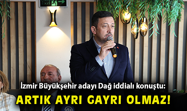 AK Parti’nin İzmir ilçe Aday Tanıtım Toplantısında konuşan İzmir Büyükşehir Belediye Başkan Adayı Hamza Dağ, “İzmir’imizde algı siyaseti değil hizmet siyaseti yapacağız. İzmir’imizde hiç kimseyi ötekileştirmeyeceğiz, sevgi diliyle konuşacağız, şirin şehrimizin her köşesine muhabbet tohumları ekeceğiz… ’İzmir yeter bu çile bitsin’ diyor. Ben de diyorum ki, biz bu çileyi bitirmek için sizlerin desteğine talibiz” ifadelerini kullandı.