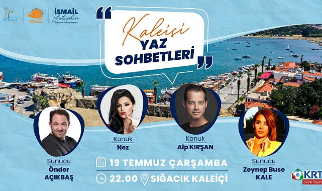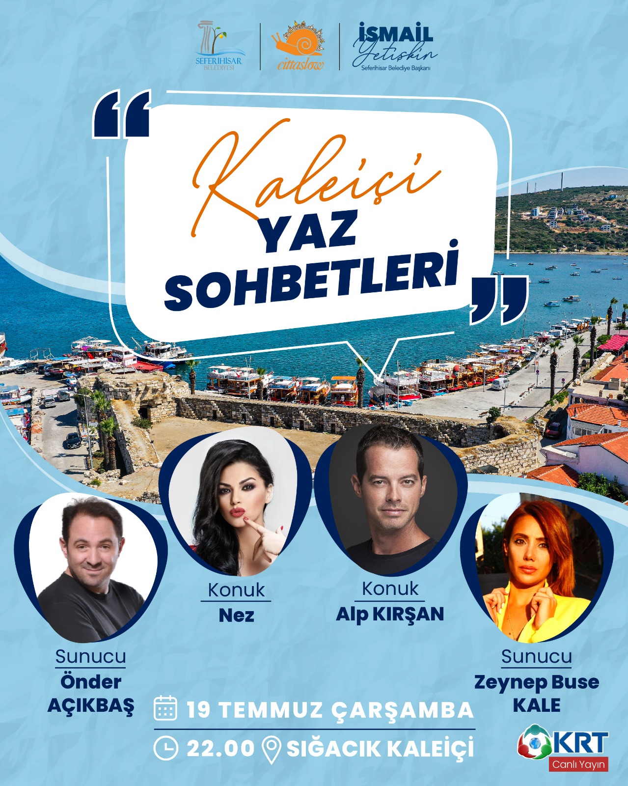 Seferihisar Belediyesi, yaz akşamlarını birbirinden güzel etkinliklerle renklendirmeye hazırlanıyor. Sunuculuğunu Önder Açıkbaş ve Zeynep Buse Kale’nin üstlendiği “Yaz Sohbetleri” önemli konular ve konukları ile yaz akşamlarının vazgeçilmezi olacak. 19 Temmuz Çarşamba akşamı saat 22.00’da Sığacık Kaleiçi’nde yapılacak ilk buluşmanın konukları ise sinema oyuncusu ve sunucu Alp Kırşan ile pop müziği sanatçısı Nez olacak. 2 ay boyunca her Çarşamba devam edecek “Kaleiçi Yaz Sohbetleri”, KRT TV’den de canlı yayınlanacak.“YAZ AKŞAMLARINA RENK KATIYORUZ”Seferihisar Belediye Başkanı İsmail Yetişkin, ilk defa geçen yaz düzenledikleri Yaz Sohbetleri’nin halktan büyük ilgi gördüğünü ifade etti. Yetişkin, “Yaz akşamlarına renk kattık. Sığacıklı hemşehrilerimiz büyük ilgi gösterdi. Biz de bu yaz, yeniden gerçekleştirme kararı aldık. Bu yaz da birbirinden değerli konuklarımız olacak. Tüm hemşehrilerimizi, etkinliklerimize davet ediyorum” diye konuştu.