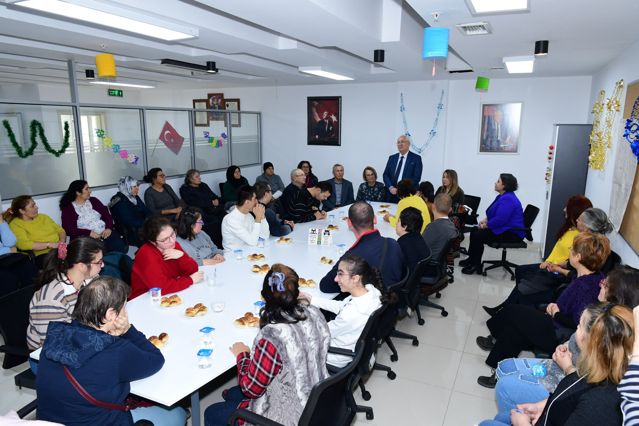 Karabağlar Belediyesi Yıldız Kenter Kültür Sanat Merkezi’nde düzenlenen etkinliklere, Karabağlar Belediye Başkanı Muhittin Selvitopu, Karabağlar Kent Konseyi Başkanı Alev Ağrı, belediye meclis üyeleri, Karabağlar Kent Konseyi üyeleri katıldı. İlk etkinlikte engelli çocuklar ve aileleriyle bir araya gelen Başkan Selvitopu, Karabağlar’da engelli nüfusun yoğunluğuna dikkat çekerek, “Karabağlar Belediyesi olarak her zaman engelli bireylerimizin yanında olacağız” dedi.Karabağlar Kent Konseyi Başkanı Alev Ağrı da, emeği geçen Karabağlar Kent Konseyi Engelli Meclisi ve Engelli Anneleri Çalışma Grubu’na teşekkür etti.Başkan Selvitopu, her hafta çarşamba gerçekleştirilen spor aktivitelerine katılan çocuklara eşofman takımı ve spor ayakkabısı armağan etti. Etkinlik sonunda engelli çocuklar da, takı kursunda annelerinin yaptığı el emeği makrome örmesi “rüya kapanını “ Başkan Selvitopu’na armağan ettiler.Yeni yıl etkinliğiKarabağlar Kent Konseyi Tahsin Yazıcı Mahalle Meclisi’nin çocuklar için düzenlediği yeni yıl etkinliğine de katılan Başkan Selvitopu, 2024'ün sağlık, huzur ve mutluluk getirmesini diledi. Başkan Selvitopu çocuklara, Nutuk, çocuk kitapları, boyama seti, kırtasiye seti ve şapkadan oluşan set armağan etti.Çocuklar, Maksat Sanat Atölyesi’nin gerçekleştirdiği balon katlama atölyesinde müzik eşliğinde keyifli zaman geçirdiler.