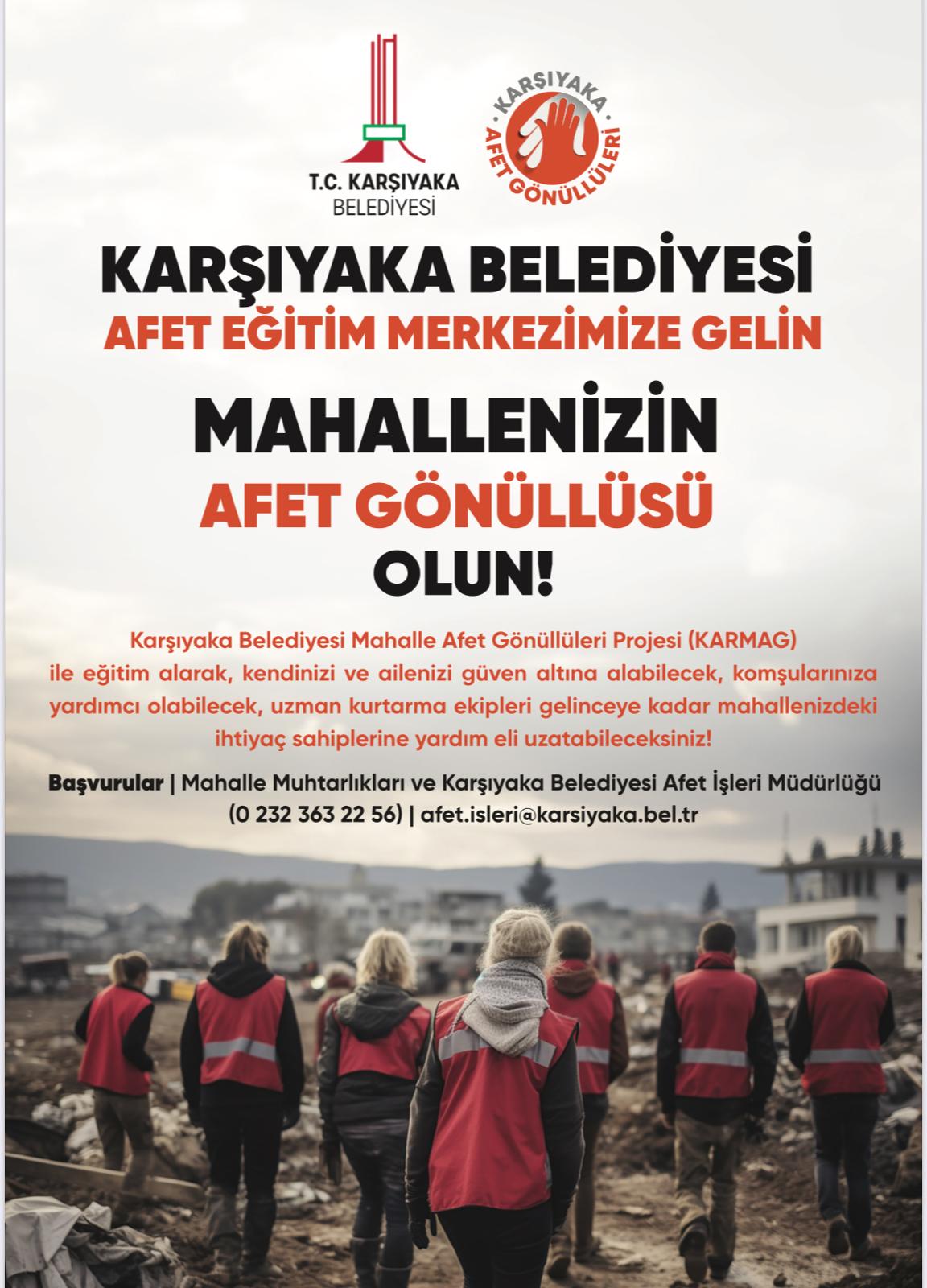 Afetlere dirençli bir kent ve bilinçli bir toplum için örnek çalışmalar yürüten Karşıyaka Belediyesi, ‘Mahalle Afet Gönüllüleri’ projesini başlattı. Afet Eğitim Merkezi’nde temel afet bilinci eğitimi almak ve gönüllü oluşuma dahil olmak isteyen vatandaşlar; Belediye Afet İşleri Müdürlüğü’ne ya da mahalle muhtarlıklarına müracaat edebilecek. Başvurular, Karşıyaka’da ikamet eden ve 18 yaş üzeri tüm vatandaşlara açık olacak. Şubat ayı itibarıyla, Karşıyaka Belediyesi Afet Eğitim Merkezi’nde gönüllü eğitimlerine başlanacak. 11 ayrı istasyondan oluşan parkurdaki eğitimler uygulamalı olarak gerçekleştirilecek.ÖNCE EĞİTİM SONRA TATBİKATProgram kapsamında gönüllülere deprem, yangın ve sel gibi afetlere karşı hayati önem taşıyan bilgiler aktarılacak. Katılımcılar, alınması gereken tedbirlerden ilk yardıma kadar pek çok konuda bilinçlendirilecek. Eğitimler, mahallelerde düzenlenecek tatbikatlar ile devam edecek. Karşıyaka Belediyesi Mahalle Afet Gönüllüleri (KARMAG) projesi ve başvurular hakkında, 0 (232) 363 22 56 numaralı telefondan ve [email protected] e-posta adresinden detaylı bilgi alınabilecek. BAŞKAN ÜNSAL’DAN ÇAĞRIKarşıyaka Belediye Başkanı Yıldız Ünsal “Geçmişte meydana gelen afetlerde yaşanan acıların tekrarlanmaması için dirençli bir kent ve hazırlıklı bir toplum yaratmak zorundayız. Karşıyaka Belediyesi Mahalle Afet Gönüllüleri, bu hedef doğrultusundaki en önemli projelerimiz arasında yer alıyor. Kapsamlı bir eğitimden geçecek olan gönüllüler, afet hallerinde kendilerini ve ailelerini güven altına alabilecek, komşularına yardım edebilecek, uzman kurtarma ekipleri gelene kadar mahallelerindeki ihtiyaç sahiplerine destek verebilecek. Örnek nitelikte bir gönüllü yapılanması oluşturacağımıza inanıyor, duyarlı vatandaşlarımızın başvurularını bekliyoruz” diye konuştu.