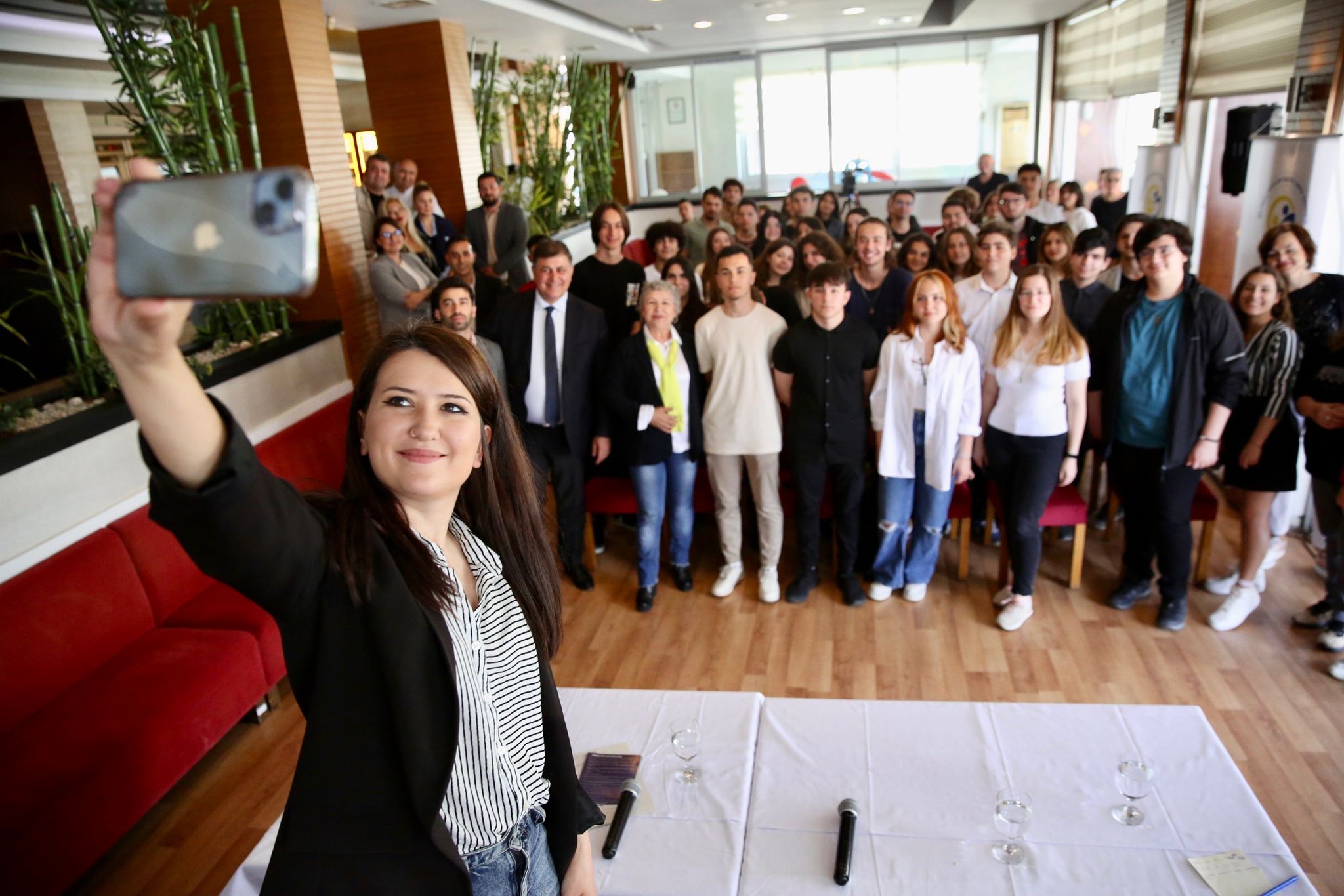 Karşıyaka Belediyesi Vatandaş Katılım Birimi ve Bilinçli Toplum Oluşturma Derneği kolaylaştırıcılığında organize edilen ve Gökçe Küçük moderatörlüğünde gerçekleştirilen buluşmaya Karşıyaka Belediye Başkanı Dr. Cemil Tugay, CHP Karşıyaka Gençlik Kolları Başkanı Gökhan Göktepe ve Bilinçli Toplum Oluşturma Derneği Yönetim Kurulu Başkanı Gülbin Çiçek Kayahan katılarak gençlerin yönelttiği soruları yanıtladı ve isteklerini dinledi. Gençlerin ülkenin gündemi hakkındaki düşüncelerini, beklentilerini ve hem Karşıyaka hem de Türkiye için isteklerini öğrenmek adına düzenlenen buluşmada bilinçli bir toplum oluşturma hedefinde gençlere ve büyüklere düşen sorumluluklar konuşuldu. Soru-cevap şeklinde gerçekleştirilen etkinlikte genç katılımcılar siyasette aktif olarak yer almak, Türkiye’nin geleceğinde söz sahibi olmak ile ilgili sorular sordu. “SÖZ SAHİBİ OLMAK İÇİN ÇALIŞMALIYIZ”14 Mayıs’ta gerçekleştirilecek seçimler öncesinde Cumhuriyet Halk Partisi’nin gençler için hazırladığı politikalar hakkında bilgi veren CHP Genel Başkan Yardımcısı ve İzmir Milletvekili Adayı Gökçe Gökçen, siyaset yapmak isteyen gençlerin ne yapması, nasıl bir yol izlemesi gerektiğini anlattı. Dayanışmanın çok önemli olduğunu vurgulayan Gökçen, “Gerektiğinde eleştirilmeli, eleştirirken de eksiklerin giderilmesi için çalışmamız gerekiyor. Kendi ilgi alanınızı tespit edip bu alanda çalışmalar gerçekleştirmek ve bunu göstermek önemli” dedi. GENÇLER SORDU TUGAY YANITLADIKarşıyaka Belediye Başkanı Dr. Cemil Tugay’a da kent ile ilgili sorular yönelten gençler, kapsamlı bir kütüphane istediklerini söyledi. Gençlerin hem sivil toplumda hem siyasette aktif olmaları gerektiğini dile getiren Tugay özellikle kent yönetiminde gençlerin fikir ve isteklerini çok önemsediğini söyledi.