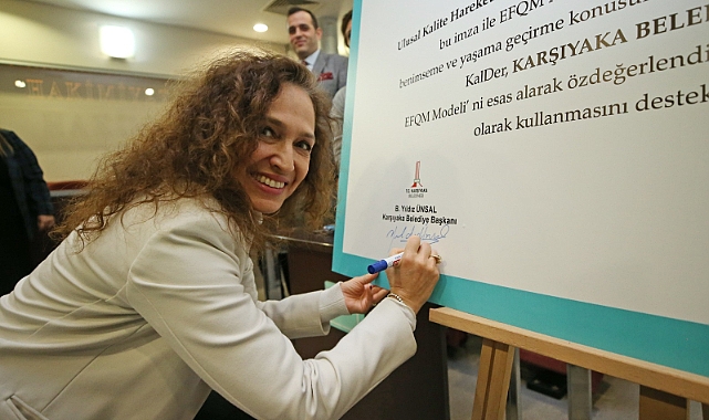 MÜKEMMELLİK YOLCULUĞUİmza töreninde konuşan Karşıyaka Belediye Başkanı Yıldız Ünsal, vatandaşa hizmet noktasında en doğru, en etkili ve en kaliteli yaklaşımı sunma misyonu ile hareket ettiklerini söyledi. Bu anlayışla, yollarının EFQM Modeli ile kesiştiğini belirten Başkan Ünsal “Bizim çizdiğimiz yol ile EFQM Modeli’nin vizyonunun örtüştüğünü gördük. Bu harekete dahil olmanın, Karşıyaka Belediyesi’nin kurumsal anlayışını daha üst seviyeye çıkaracağına inandık. KalDer İzmir Şubesi ile imzaladığımız Ulusal Kalite Hareketi İyi Niyet Bildirgesi doğrultusunda, hizmet anlayışımızı kusursuz hale getirme çabalarımıza devam edeceğiz” diye konuştu.