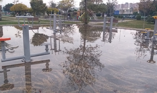 yağmur sonrası göle dönen parkı kullanmak neredeyse imkansızken vatandaşlar ise duruma isyan etti.