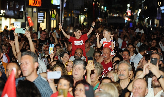 Karşıyaka Çarşısı, binlerce yurttaşın katıldığı 30 Ağustos Zafer Bayramı yürüyüşünde gelincik tarlasına döndü.Karşıyaka Belediye Başkanı Dr. Cemil Tugay, “Dün çıktığı yoldan geri dönmeyen kahramanların çocukları olarak, bugün bir kere daha söz veriyoruz: bu büyük emaneti taşımaktan asla yorulmayacağız. Her biri onur anıtı olan atalarımızdan aldığımız bu büyük emaneti, onlara yakışacak biçimde gelecek kuşaklara taşıyacağız” diye konuştu.Karşıyaka Belediyesi’nin hazırladığı etkinlik programı ile binlerce yurttaş, 101. yılında 30 Ağustos Zafer Bayramı’nı coşkuyla kutladı. karşıyaka Belediyesi Ana Hizmet Binası önünde toplanan yurttaşlar saat 20.00’de kortej yürüyüşüne başlayarak Karşıyaka Çarşısından Hergele Meydanı’na ulaştı. Belediye Bandosu eşliğinde ellerde Türk Bayrakları, dillerde marşlar ile gerçekleştirilen yürüyüş izleyenlerin de katılımıyla binlerce kişiye ulaştı. Hergele Meydanı’nda Belediye Tiyatro Topluluğu’nun canlandırması ve zeybek gösterisi ile devam eden şölen, Seda Öztürk ve Belediye Orkestrası Konseri ile son buldu. Tek ses, tek yürek olan binlerce Karşıyakalı, Ulu Önder Mustafa Kemal Atatürk ve mücadele arkadaşlarını sonsuz sevgi, saygı ve minnetle andı.