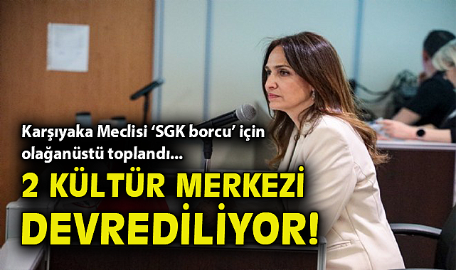 Olağanüstü toplanan Karşıyaka Belediye Meclisi’nde belediye şirketlerinin SGK’ya olan borçlarına karşılık Ziya Gökalp Sanat ve Kültür Merkezi ile Bülent Ecevit Kültür Merkezi’nin devredilmesi için yetki istendi. Önerge görüşülmek üzere İmar, Hukuk ve Plan Bütçe Komisyonlarına sevk edildi.