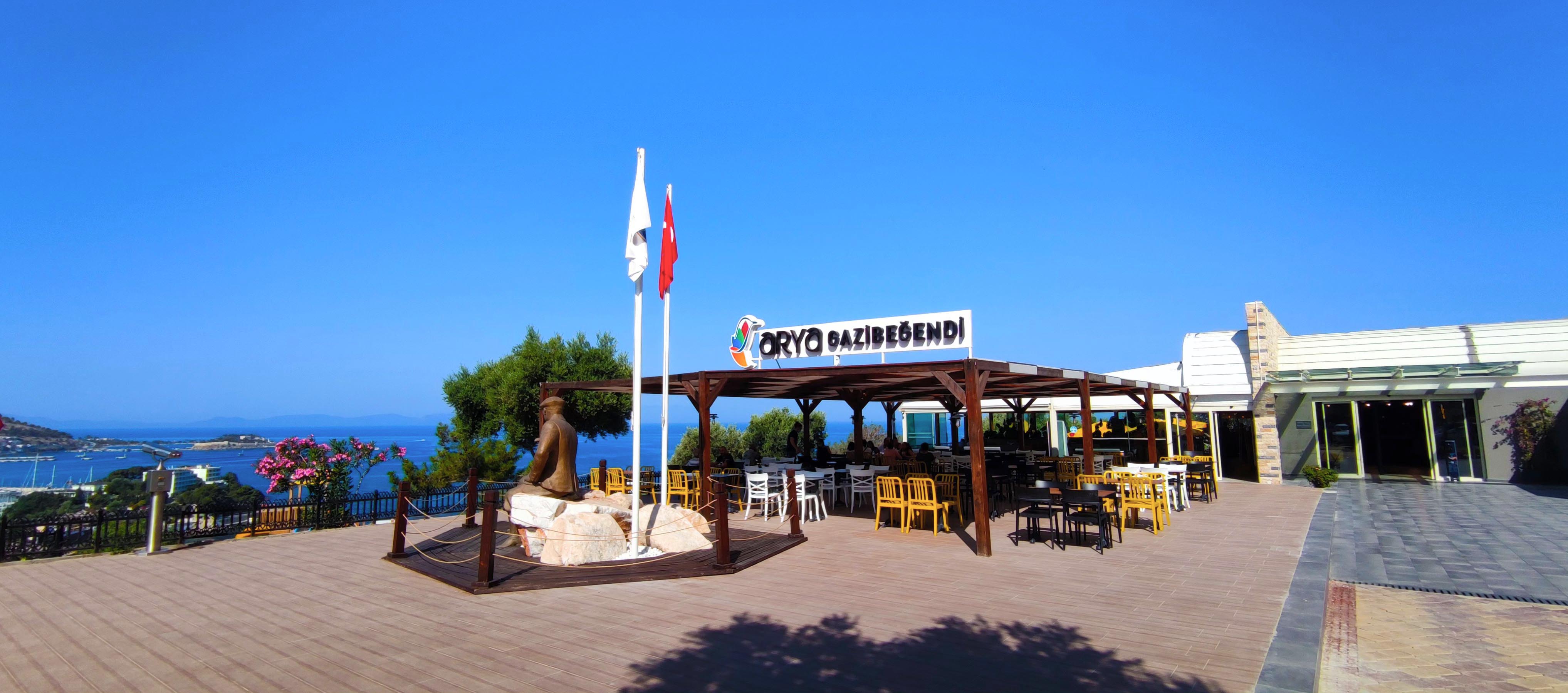 GAZİBEĞENDİ’DEN KENT MANZARASINI KUŞBAKIŞI SEYİR KEYFİ Kuşadası’nın en büyüleyici manzaralarından birisine sahip bölgelerinin başında Gazibeğendi Tepesi geliyor. Gazibeğendi, adını Gazi Mustafa Kemal Atatürk’ün 1924 yılında kente yaptığı ziyaretten alıyor. Mustafa Kemal Atatürk’ün Kuşadası ziyaretinde aracını bu noktada durdurarak bir süre manzarayı seyretmesi ve ardından da çok beğendiğini ifade etmesi üzerine bölge Kuşadalılar tarafından Gazibeğendi olarak anılmaya başlanıyor.Zeytin ağaçlarının arasında kısa bir molaGünümüzde Atatürk heykelinin bulunduğu bölgede yer alan Arya A.Ş’ye bağlı Gazibeğendi Tesisleri birbirinden lezzetli yiyecek ve içecekleri ile manzara keyfini bambaşka bir boyuta taşıyor. Uygun fiyata sunduğu kaliteli hizmet ile kent sakinleri kadar yerli ve yabancı turistlerin de uğrak noktası haline gelen Gazibeğendi Tepesi, zeytin ağaçlarının arasına yerleştirilen oturma grupları ile Güvercinada ve liman manzarasına karşı huzurla vakit geçirme olanağı sunuyor.