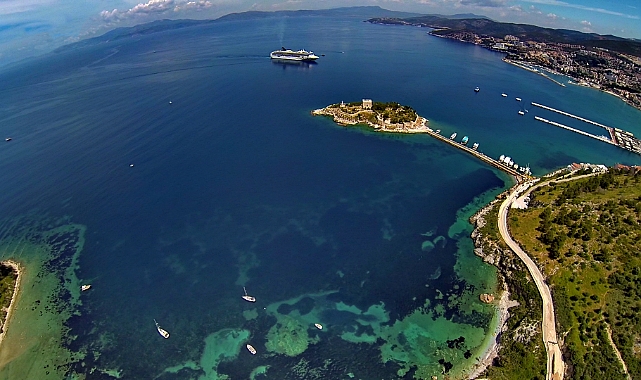 GÜVERCİNADA’DA TARİH İLE DOĞANIN MUHTEŞEM BULUŞMASIKuşadası’nda “deniz manzarası” denilince akla ilk gelen yer, kentin simgesi olan Güvercinada oluyor. Bir mendirek aracılığıyla karaya bağlı olan ve üzerinde bulunan kale ile UNESCO Dünya Mirası Geçici Listesine girmeye hak kazanan Güvercinada, doğa ile tarihin birleştiği muhteşem bir mekan olarak Kuşadası’nı ziyaret eden yerli ve yabancı turistlerin en sık ziyaret ettiği noktalardan birisi haline geliyor. Kuşadası Belediyesi tarafından Güvercinada’nın farklı yön ve noktalarında oluşturulan oturma ve dinlenme alanları masmavi denize karşı unutulmaz bir manzara deneyimi vaat ediyor.Denize karışan melodilerGüvercinada, manzarası ve tarihi kadar yaz akşamlarında Kuşadası Belediyesi tarafından düzenlenen Maffy Caz Günleri ve Güvercinada Dinletileri ile renkleniyor. Öte yandan Kuşadası Belediyesi tarafından Güvercinada Kalesi’nde kurulan Deniz Ticaret Tarihi Müzesi, kapılarını açtığı günden bu yana ziyaretçi akınına uğruyor. Güvercinada girişinde bulunan Arya Tesisi ise zengin menüsü, kaliteli hizmeti ve büyüleyici atmosferi ile keyifli molaların adresi haline geliyor.