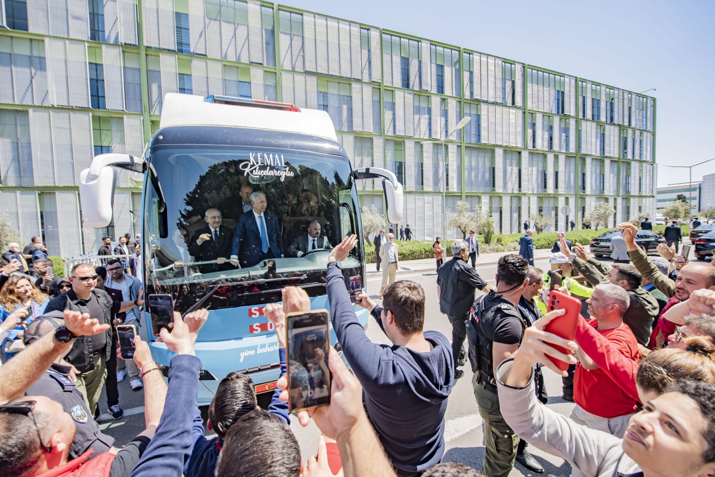 Kılıçdaroğlu kendisini bekleyenlerle tek tek tokalaştıktan sonra seçim arabasına bindi. Kemal Kılıçdaroğlu, yurttaşların sloganları arasında havalimanından ayrıldı.