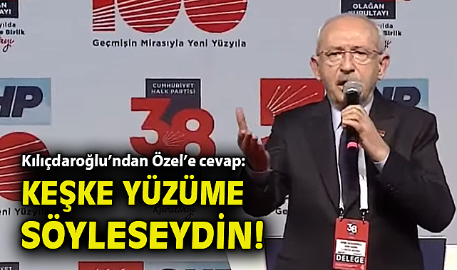CHP’nin 38. Olağan Kurultayı’nda konuşan Genel Başkan Adayı Özel'e cevap veren Kemal Kılıçdaroğlu bir kez daha söz alarak kürsüye geldi. Eleştirilere yanıt veren Kılıçdaroğlu, “PM’de beni eleştiren kimsenin sözünü kesmem, sen de burada söylediklerini uzun süredir beraber çalışıyoruz ya keşke yüzüme söyleseydin” dedi.