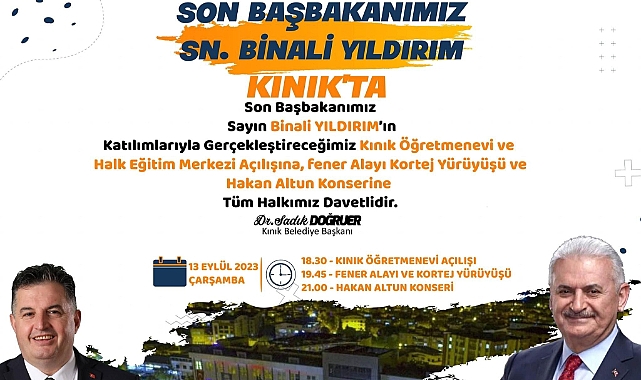 7’ncisi düzenlenen ve ilçe halkının yanı sıra ilçe dışında birçok misafire ev sahipliği yapan Hasat Festivali görkemli bir kapanışa hazırlanıyor.Birbirinden ünlü sanatçıların sahne aldığı festival, spor yarışmaları ve çeşitli etkinliklerle ilçeyi adeta panayır yerine çevirdi.Festivalin kapanış gününde Yıldırım’ı ağırlayacak olan Kınık Belediye Başkanı Dr. Sadık Doğruer son başbakanı kapanış gününde ilçede ağırlayacak olmanın mutluluğunu yaşadığını belirterek “Son Başbakanımız ve Genel Başkan Vekilimiz Sayın Binali Yıldırım beyefendinin yoğun programına rağmen, festivalimizin son gününde bizlerle olması ziyadesiyle mutlu etmiş ve onurlandırmıştır. Sayın Başbakanımıza teşekkür ederim. Herkesin bu coşkulu günde yanımızda olmasını diliyor ve bütün halkımızı davet ediyorum” dedi.7’ncisi düzenlenen Hasat Festivali’nin beşinci gününde son başbakan Binali Yıldırım’ın yanı sıra, AK Parti Genel Başkan Yardımcısı Hamza Dağ, Ak Parti il başkanı Bilal Saygılı, Milletvekilleri, Meclis Üyeleri, STK Temsilcileri Kınık halkı ile birlikte olacak.Program saat 18:30’da Kınık Öğretmenevi açılışı, Kınık’ın Kurtuluş Günü kapsamında gerçekleşecek olan saat 19:45’teki Fener Alayı ve Kortej Yürüyüşü ve saat 21:00’daki Hakan Altun Konseri ile son bulacak.Levent Kömür