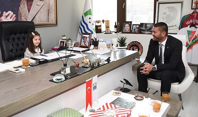 23 Nisan Ulusal Egemenlik ve Çocuk Bayramı’nda bu yıl Foça Belediye Başkanlığı koltuğuna 5 yaşındaki küçük öğrenci Neva Simavlı oturdu.