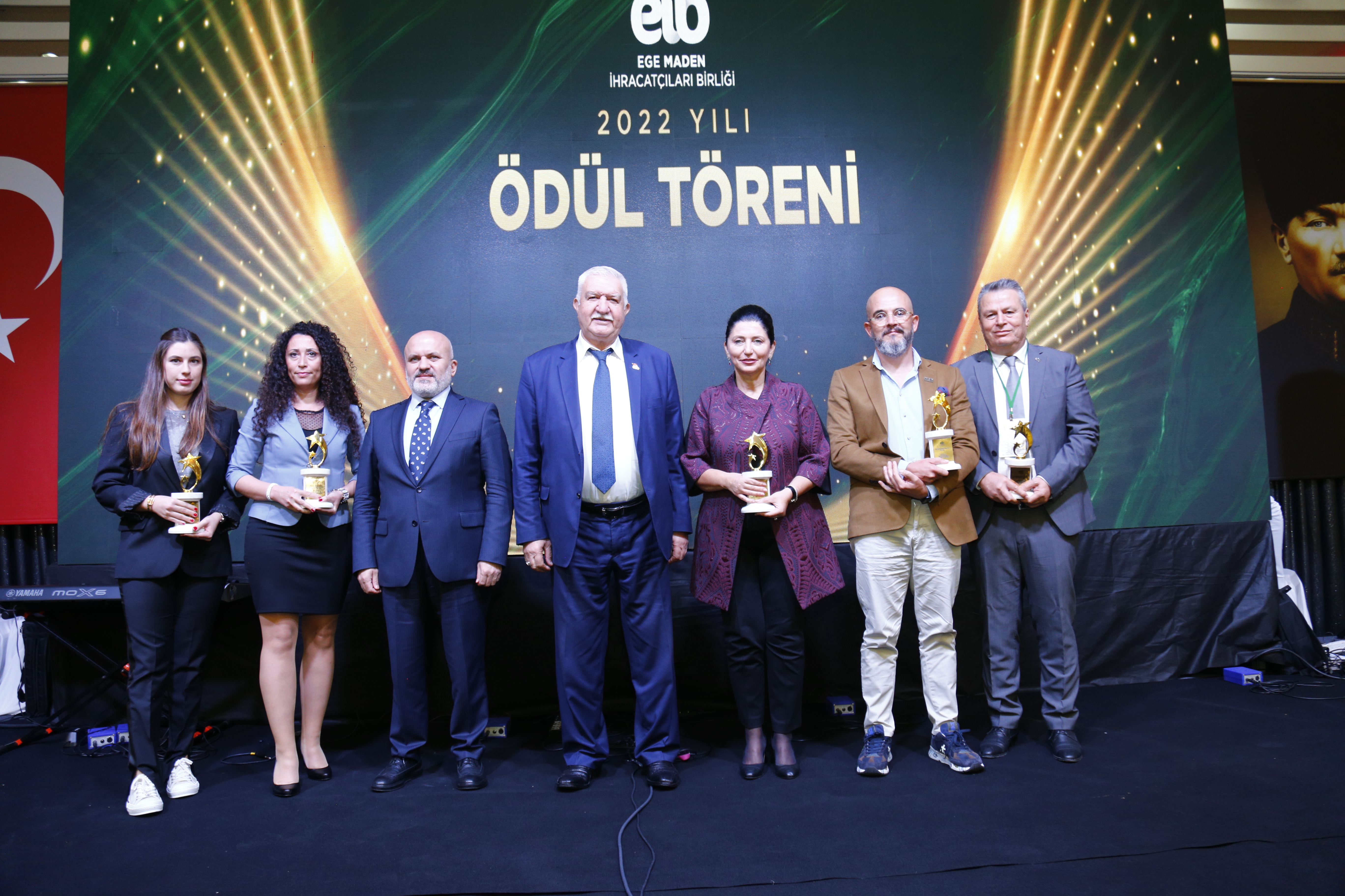 Mermerin başkenti Afyonkarahisar’da 9 Kasım’da düzenlenen 5. Hayatımız maden Çalıştayı’nın Gala Gecesi’nde düzenlenen, “EMİB İhracatın Yıldızları Ödül Töreni”nde Ege Maden İhracatçıları Birliği doğal taş ve doğal taş dışı madenler sektörlerinde en çok ihracat yapan 5’er üyesini onurlandırdı.Ödül töreninde konuşan Ege Maden İhracatçıları Birliği Yönetim Kurulu Başkanı İbrahim Alimoğlu, 2022 yılında 1,2 milyar dolar ihracata imza attıklarını, ödül alan 10 firmanın bu ihracatın 357 milyon dolarlık bölümünü yaptıklarını kaydetti.