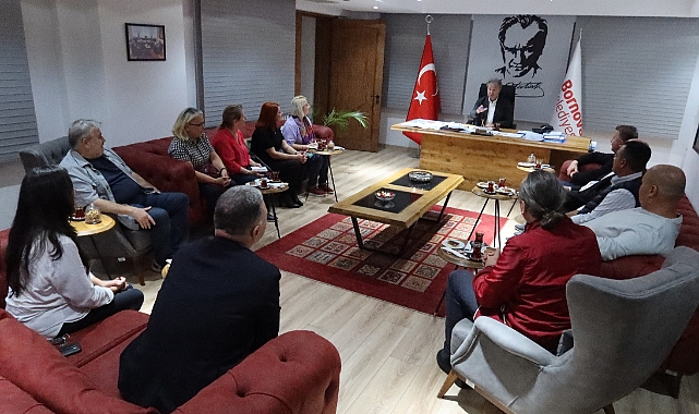 Bornova Belediye Başkanı Dr. Mustafa İduğ, Makedonya Veles Belediye Başkanı Goran Stojanoski ve beraberindeki heyetin ziyaretinde, Bornova’da hayata geçirdikleri proje ve hizmetleri de anlattı. İki belediye arasındaki işbirliği olanaklarının da gündeme geldiği ziyarette Başkan İduğ, Bornova Belediyesi'nin vizyon projeleri hakkında bilgi verdi. Bornova Belediyesi’nin kendi asfalt üretim tesisini kurması sayesinde elde edilen hızlı ve ekonomik asfalt serim hizmetinin vatandaşlarda büyük bir memnuniyet yarattığını dile getiren Başkan İduğ, Çamdibi Yarı Olimpik Kapalı Yüzme Havuzu ve Kız Yurtları gibi projelerin göreve gelir gelmez ortaya koydukları etkin kaynak kullanımı sayesinde hayata geçirildiğini söyledi. Bornova Belediyesi’nin kullandığı araçların kiralama yöntemi yerine satın alınmasıyla tasarruf hamlesini başlattıklarının altını çizen Başkan İduğ, “Bornovamıza onlarca yıl hizmet edecek tesisleri kazandırmanın mutluluğunu yaşarken bir yandan da Kahramanmaraş Depremi’nin hemen ardından, çok kısa sürede çadır kentler kurup yardım malzemeleri göndererek depremzedelerin yaralarını sarmaya çalıştık. Bugüne kadar insanımız için en iyisini yapma anlayışıyla çalıştık” dedi. Ziyarette başta çeşitli alanlarda eğitimler olmak üzere pek çok konuda işbirliği yapılması için fikir alışverişinde bulunuldu.