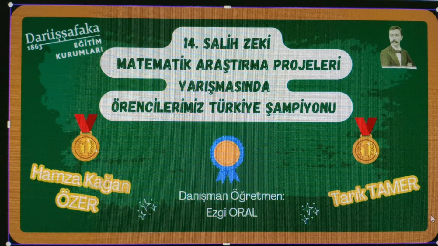 Çiğli Fen Lisesi, 14. salih zeki Matemati Araştırma Projeleri Yarışmasından ödülle döndü. Danışman öğretmenleri Ezgi Oral ile yarışmaya katılan Çiğli Fen Lisesi öğrencileri Hamza Kağan Özer ve Tarık Tamer “Kosinüs Değeri Rasyonel Sayı Olarak Verilen Açılara Sahip Tam Sayı Kenarlı Üçgen’’ adlı projeleri ile birincilik ödülüne değer bulundu. İstanbul'da Darüşşafaka Eğitim Kurumlarında gerçekleşen 14. “Salih Zeki Matematik Araştırma Projeleri Yarışması” jürisi Bilkent Üniversitesi’nden Prof. Dr. Azer Kerimov; ODTÜ KKTC Kampüsünden Doç. Dr. Erhan Gürel ve Doç. Dr. Kürşat Aker ve Yıldırım Beyazıt Üniversitesinden Dr. Selim Bahadır’dan oluşuyor.