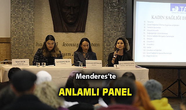 Menderes Belediyesi Amfi Tiyatro’da gerçekleşen panelde Menderes Belediyesi Kadın Dayanışma Birimi Sosyal Hizmet Danışmanı Sibel Çelik, Menderes Belediyesi Kadın Dayanışma Birimi Psikoloğu Işıl Eldaş Bilir, Avukat Ceren Leyla Gür Önalan, Psikolog ve Kadın Sağlığı Eğitimi Programı Eğitimcisi Damla Karakuş Turan kadın hakları, kadın sağlığı ile günün anlam ve önemine dair açıklamalarda bulundu.