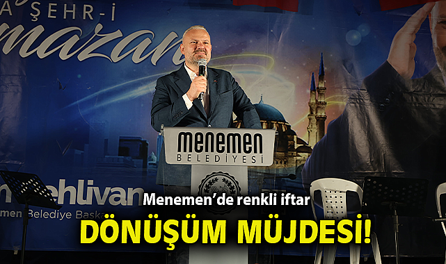 İftar programında hemşehrilerine seslenen Menemen Belediye Başkanı Aydın Pehlivan, yerinde dönüşüm modeliyle ilçede kentsel dönüşümün başlayacağını söyledi. Dönüşümünün ilk olarak riskli alan ilan edilen Kazımpaşa, Zafer, Seydinasrullah, Camikebir ve Ahıhıdır mahallelerinde olacağını söyleyen Başkan Pehlivan, vatandaşlara seslenirken “Kimse mahallesinden komşusundan olmayacak” ifadelerini kullandı.