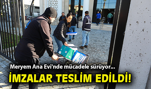 Efes Selçuk Belediye Başkanı Filiz Ceritoğlu Sengel, daha önce yaptığı açıklamalarda, Meryem Ana Evi otopark gelirlerinin ilçe halkının hakkı olduğunu vurgulamış ve bu konuda geri adım atılmayacağını belirtmişti. Başkan Sengel, geçen hafta Meryem Ana Evi nöbet alanından yaptığı canlı yayında, Efes Selçuk Belediyesi tarafından açılan yürütmeyi durdurma davasının sürdüğünü duyurmuş ve hukuki sürecin dikkatle takip edildiğini ifade etmişti. HALK VE BELEDİYE ÇALIŞANLARINDAN OMUZ OMUZA MÜCADELE Belediye çalışanları ve Efes Selçuk halkı, yaşanan bu süreçte müdahale dilekçesi imzalayarak mücadelenin devam ettiğini gösterdiler. Toplanan imzaları el arabasıyla Adliye binası önüne götürerek burada tüm çalışanlar adına açıklama yapan işçi temsilcileri; "Meryem Ana Evi otopark gelirlerinin Efes Selçuk Belediyesi’nde kalması için mücadelemizden asla vazgeçmeyeceğiz. Halkımız ve işçilerimiz bu konuda tek yürek oldu. Geleceğimiz ve hakkımız için buradayız. Şimdi dilekçelerimizi teslim ediyoruz” denildi. HUKUK MÜCADELESİ SÜRERKEN NÖBET DEVAM EDİYOR Meryem Ana Evi’nde 24 Kasım’da başlatılan nöbet, devam ederken, geçtiğimiz Cuma akşamı Meryem Ana Otopark alanındaki Efes Selçuk Belediyesi’ne ait araç ve gereçlerin çilingir marifetiyle tahliye edilmesinin ardından yaptığı canlı yayında halkı bilgilendiren Efes Selçuk Belediyesi Başkanı Filiz Ceritoğlu Sengel, Efes Selçuk Belediyesi tarafından yürütmeyi durdurma davasının açıldığını ve hukuki sürecin devam ettiğini belirtmişti.