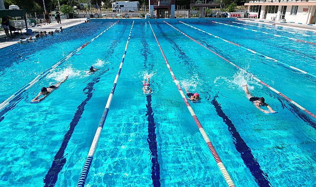 Narlıdere Belediyesi’nin ‘Yüzme Öğren, Güvende Kal’ sloganı ile başlattığı kurslara katılan çocuklar, hem yüzmeyi öğreniyor hem yazın tadını çıkarıyor