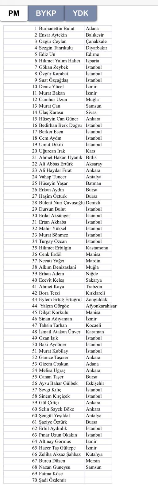 ÖNCÜŞEHİR – Cumhuriyet Halk Partisi’nin (CHP) Ankara Spor Salonu'nda dün başlayan 38. Olağan Kurultayı’nın ikinci gününde, 60 kişilik PM ve 15 kişiden oluşan YDK üyeleri belirlenecek.Oylamaya geçilmeden önce PM ve YDK’ya aday olanların isimleri okundu. PM adaylığı için 380, YDK için de 98 aday başvurdu. Geçerli başvuruların ilan edilmesiyle liste, seçim pusulası basımı için matbaaya gönderildi. Baskı işleminin ardından saat 00.00’da oylama başlayacak.Oylama öncesi PM, YDK ve Bilim, Kültür ve Sanat Platformu anahtar listesi de belli oldu.İşte o listeler;
