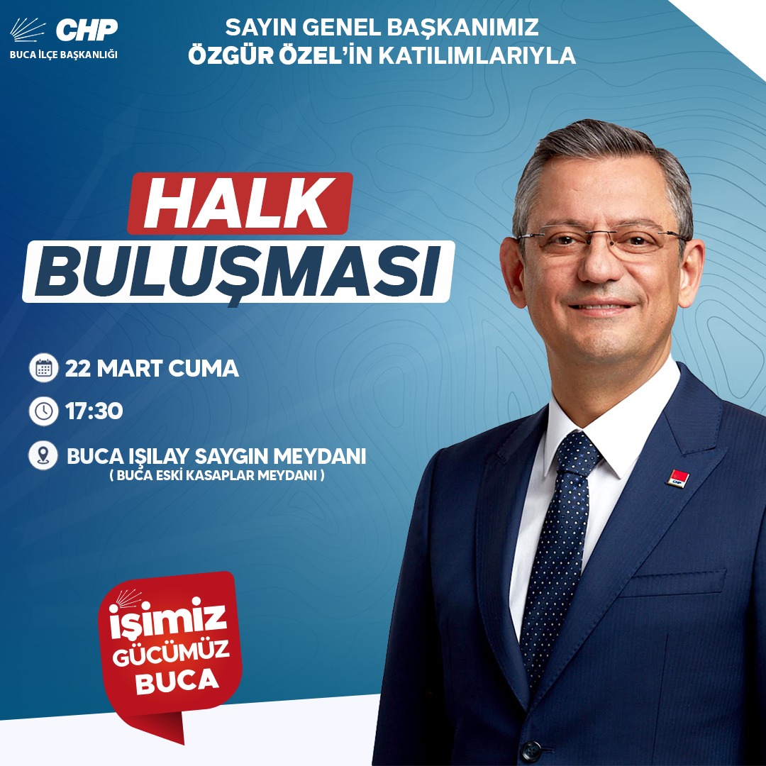 31 Mart 2024 Mahalli İdareler Genel Seçimleri’ne günler kala, Buca CHP Genel Başkanı Özgür Özel’in halk buluşmasına ev sahipliği yapacak. CHP Buca Belediye Başkan Adayı Görkem Duman ile birlikte Işılay Saygın Meydanı'nda (eski Kasaplar Meydanı) 'Halk Buluşması' gerçekleştirecek olan Özel’in Buca’ya özel önemli mesajlar vermesi bekleniyor.