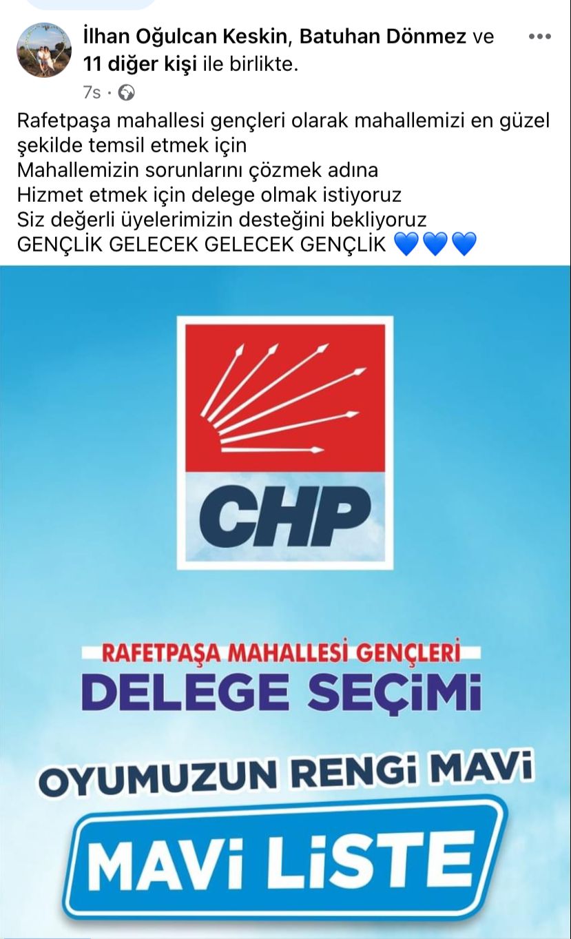 AGORAMEDYA- Cumhuriyet Halk Partisi’nde mahalle delege seçimleri tüm heyecanıyla devam ediyor. 22 Temmuz Cumartesi günü BORNOVA ilçesinin Rafet Paşa Mahallesi genç parti üyeleri mavi liste için destek çağrısında bulundular. CHP’nin gençleri örgüte çağrıda bulunurken ‘’gençlik gelecek gelecek gençlik’’ sloganını kullandılar.