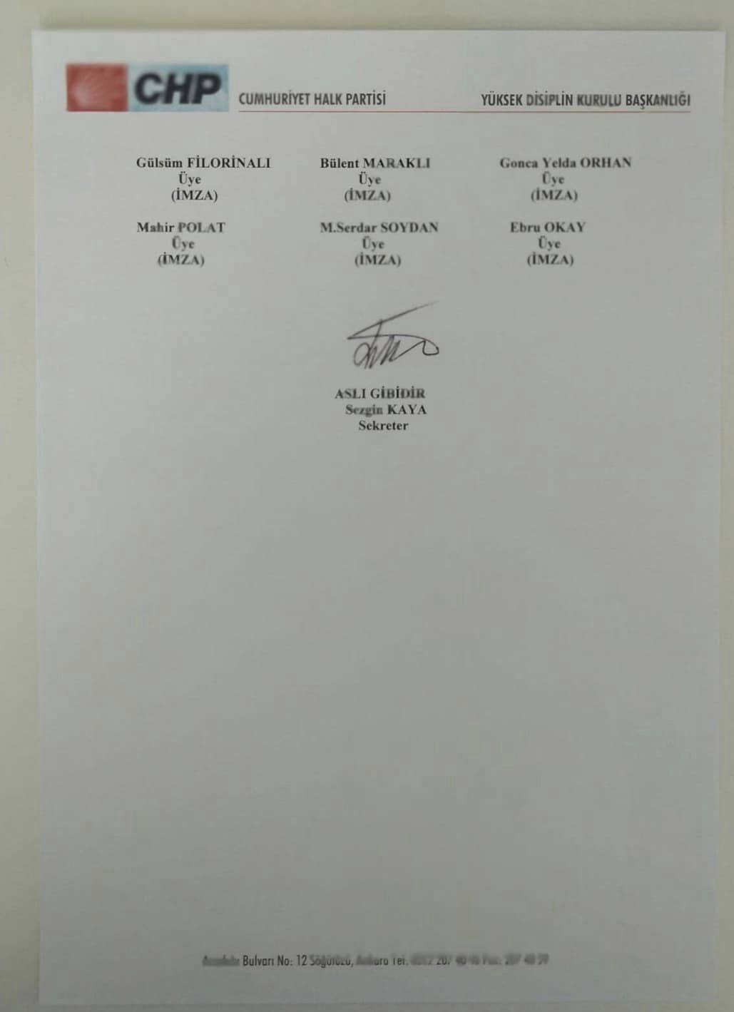 “İl disiplin kurulunun, hakkımdaki “tedbirin kaldırılması kararı” Chp Bayraklı ilçe yönetiminin itirazı nedeniyle Yüksek Disiplin Kuruluna gönderilmiş olup yüksek disiplin kurulu hakkımdaki “tedbirin kaldırılması kararını” iptal etmiştir. Seçilmiş olduğum Körfez mahallesi delegeliğim en azından 11 Ağustostaki İzmir İl Disiplin kurulunun kararına kadar düşürülmüştür. Süreci; Hiç bir haksızlık karşısında susmayan, asla sinmeyen ve korkmayan Kemalist, devrimci bir Chp li hukukçu olarak sonuna kadar takip edeceğimi, Genel Başkan Sayın Kemal KILIÇDAROĞLU’nun sık sık kullandığı “Haksızlık karşısında susan dilsiz şeytandır!” sözünü hatırlatarak kamuoyuna ve değerli Cumhuriyet Halk Partililere saygıyla bildiririm…”