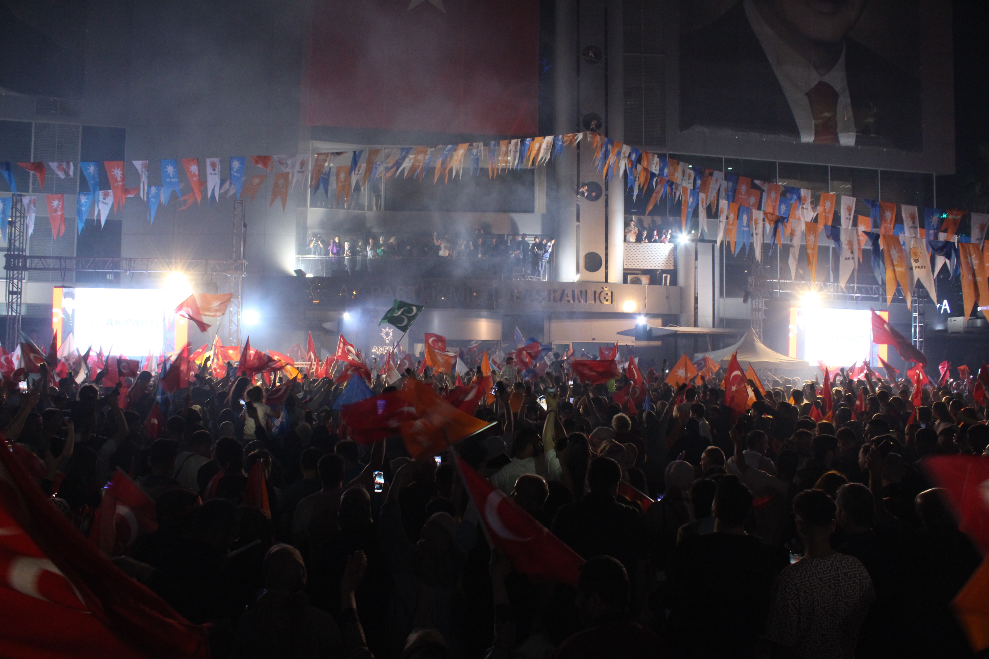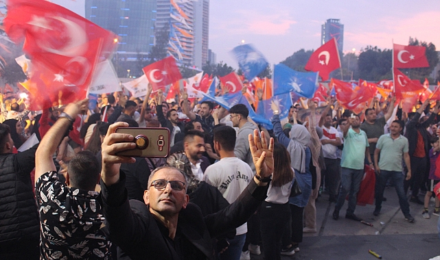 Çiğdem CANPOLAT - Resmi olmayan sonuçlara göre 13’ncü cumhurbaşkanı yeniden Recep Tayyip Erdoğan seçildi. Cumhurbaşkanı Erdoğan seçim sonrası Ankara'ya doğru yola çıkmadan önce gelen vatandaşlara seslendi. Erdoğan'ın açıklamaları sonrası ak parti İzmir İl Başkanlığı önünde toplanan vatandaşlar kutlamaya yapmaya başladı.Cumhurbaşkanının zafer konuşması sonrası ise AK Parti İzmir İl Başkanı Bilal Saygılı, HÜDAPAR ve BBP İzmir İl Başkanı parti binasında bulunan balkondan kutlamaya gelen vatandaşlara seslendi.