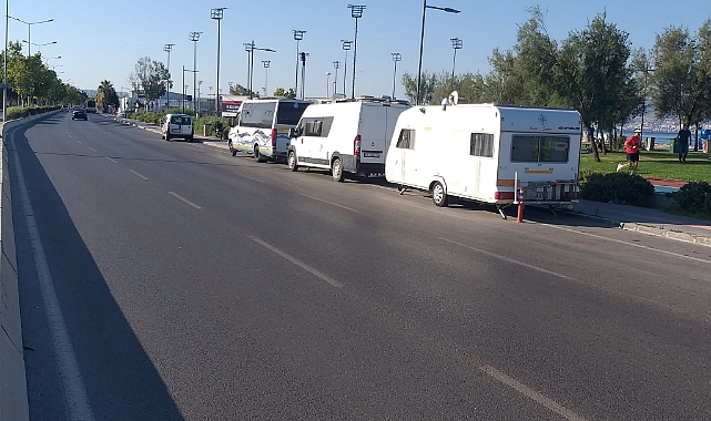Karşıyaka’nın Bostanlı Mahallesinde cadde üzerine park edilmiş karavanlar trafiği tehlikeye sokuyor. Sadece bir karavanın parkıyla başlayan süreçte karavan sayısının arttığı görülüyor.