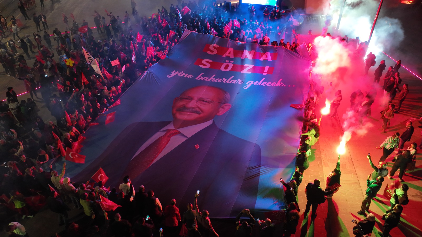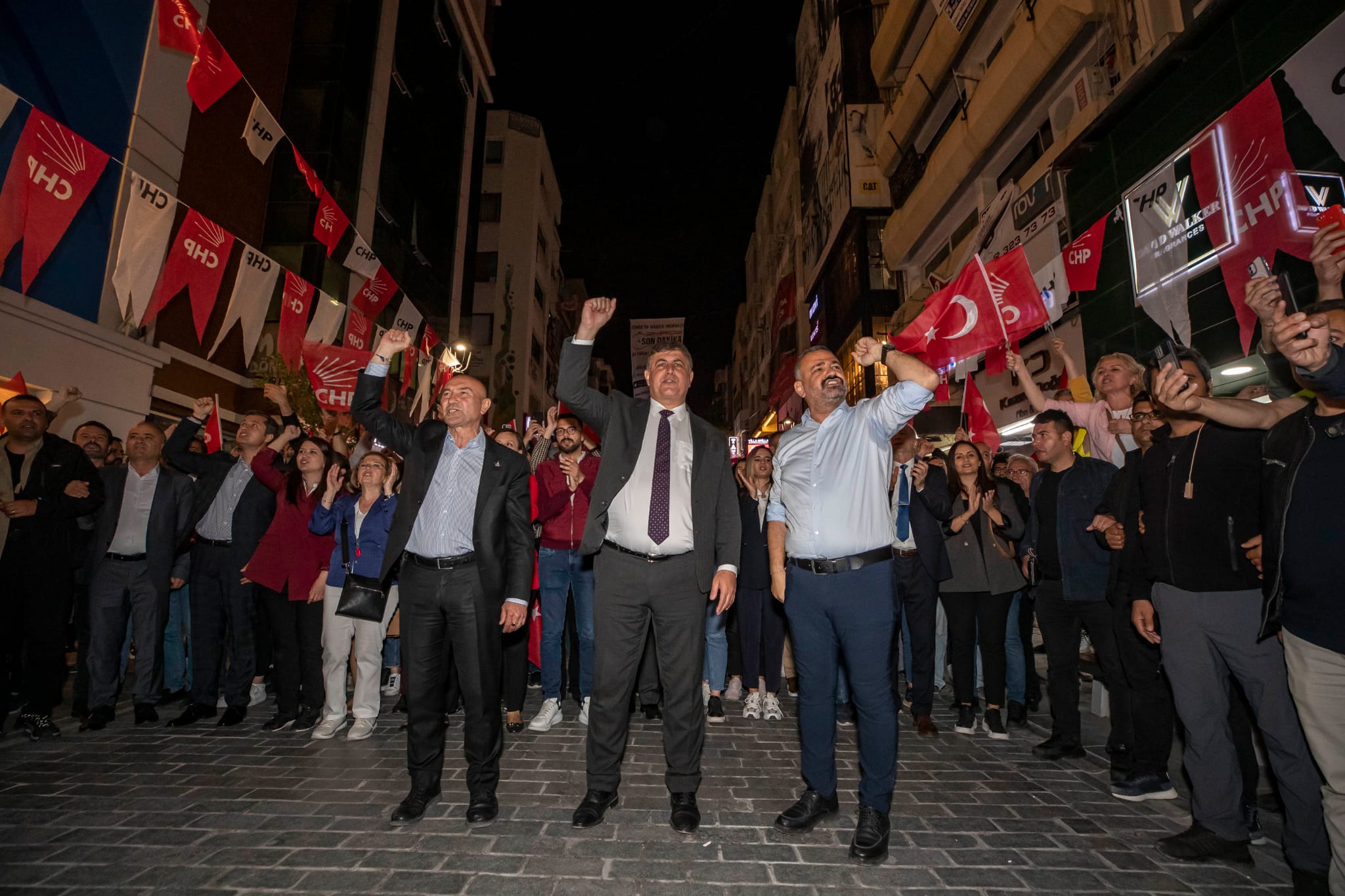 Soyer: “Geri alacağız”“İzmir Seninle Gurur Duyuyor” sloganlarıyla sahneye çıkan İzmir Büyükşehir Belediye Başkanı Tunç Soyer, “Bu seçim, adalet, hak, hukuk, emek, alın teri, namus, dürüstlük seçimi. Biz sadece bu topraklarda refah ve adaleti getirmiş olmakla kalmayacağız. Emin olun ki dünyayı etkileyecek bir seçim bu. Dünyanın tüm totoliter, popülist liderleri hepsi korkacak. O ülkelerin mazlum insanları Türkiye'ye bakıp umutlarını büyütecek. Kazandığımız zaman sadece biz kazanmayacağız emin olun bütün dünya, insanlık, erdemler, namus, adalet, demokrasi, halk kazanacak. Kazanıyoruz, sonuna geldik. 15 Mayıs sabahı, şahane bir ülkeye uyanacağız. Olağanüstü güzel bir ülkeye uyanacağız. Bugüne kadar bizden aldıkları her şeyi geri alacağız. Karşıyaka'nın, İzmir'in hakkını geri alacağız. Emekçilerin, çiftçinin hepsinin hakkını geri alacağız. Kazandığımız zaman bir şey değişecek her şey değişecek” dedi. Aslanoğlu: “Seçimi kalp yapanlar kazanacak”