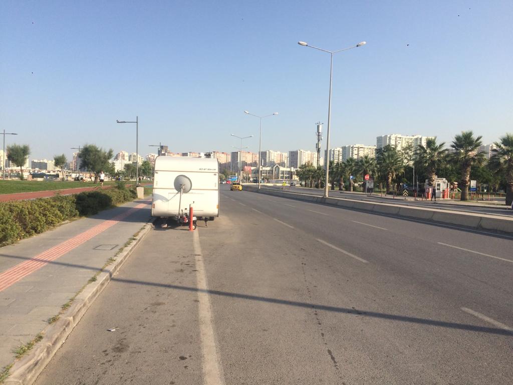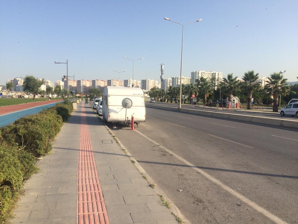 AGORA MEDYA – İzmir’in karşıyaka ilçesinde cadde üzeri trafik kurallara uygun park edilmeyen karavan tehlike taratıyor. Yaklaşık 1 aydır aynı yerde park halinde olan karavan için herhangi bir uyarı yapılmazken içinde yaşayanların bulunduğu gözlemlendi.