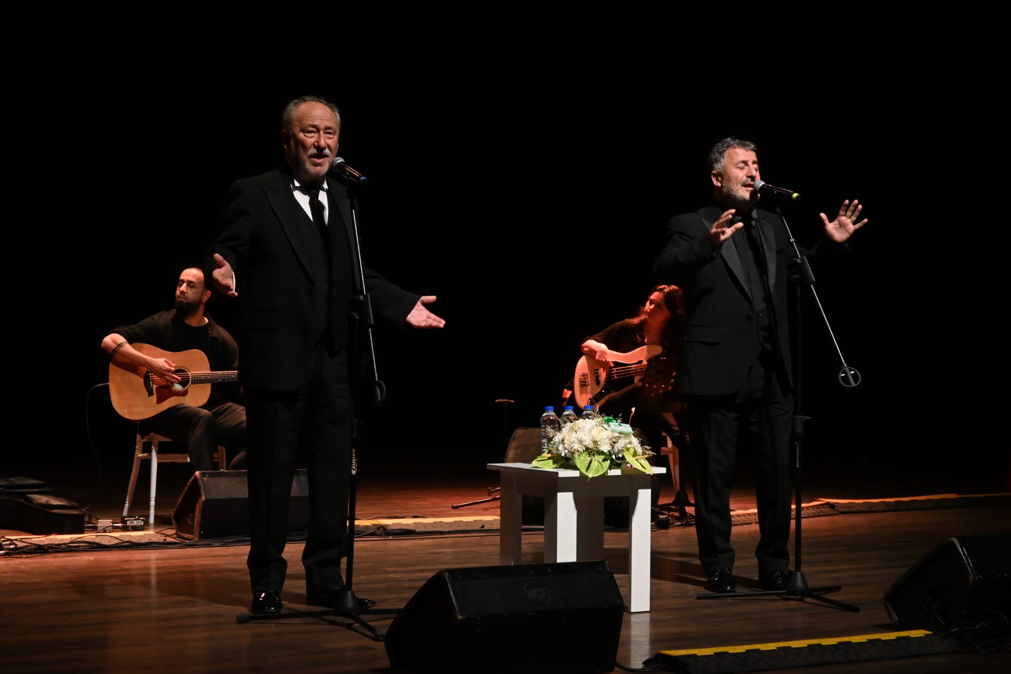 Tiyatroseverler, Altan Erkekli’nin yaşanmış hikayelerini anlattığı, Veysel Diker’in babasından duyup bugün ve yarın dinleyebileceği şekilde söylediği türküleriyle keyif bir oyun izledi. “Müzikten beri; sözden öte” sloganıyla sahnelenen oyunda, günden güne dünyanın tükettiği insana şifa niyetine bir gösteri sunuldu. Seyirciler, müzikle süslenen yaşanmış hikayelerin anlatıldığı oyunda Altan Erkekli ve Veysel Diker’in muhteşem performansını ayakta alkışladı. Usta sanatçılar Zihni Göktay ve Ayşenil Şamlıoğlu’nu da sahneye davet ederek Torbalılılara seslenen Torbalı Belediye Başkanı Mithat Tekin, “Böylesine ustaları kentimizde ağırlamak, sizlerle buluşturmak, sizlerin de salonları sanat için hınca hınç doldurmanız bizleri çok onurlandırıyor. Tiyatro festivalimiz devam ediyor” dedi.