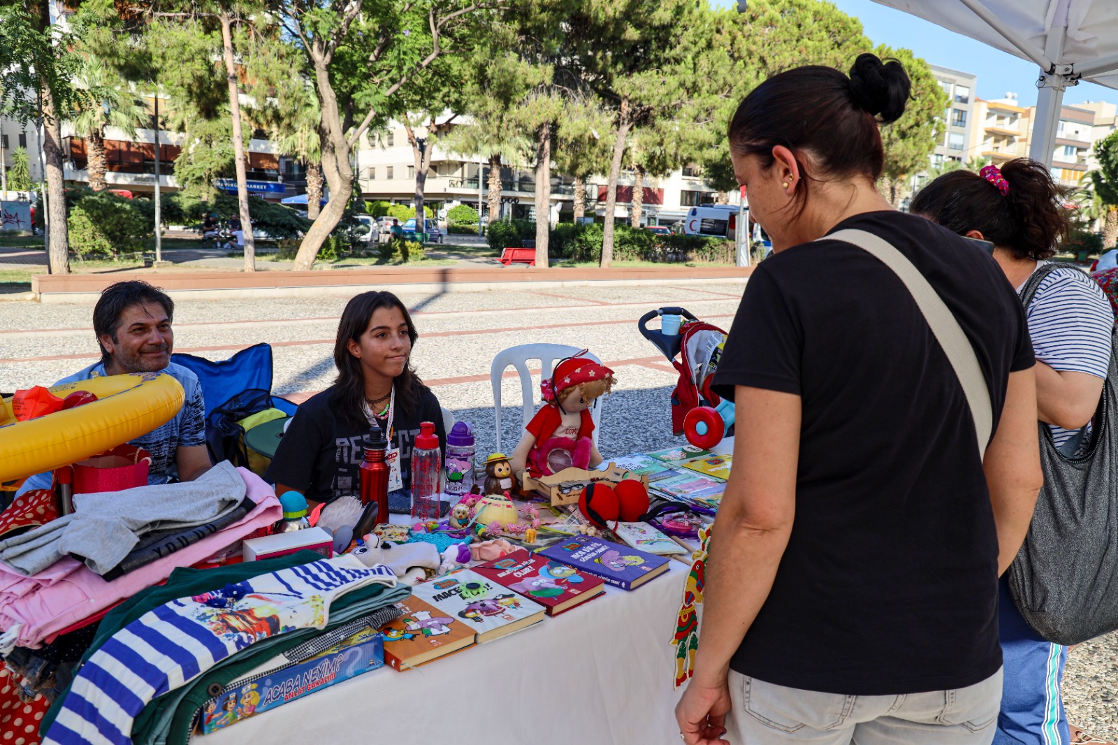 Pazarda çocuklar kullanmadığı oyuncaklar, kırtasiye eşyaları, kıyafetler ve daha nice eşyalarını yaşıtlarının kullanımına sundu.Başkan Tugay, “Sadece tüketen değil üreten ve paylaşan bir toplum olarak geleceği inşa edebiliriz” dedi.Karşıyaka Belediyesi, çocukların psikolojik, sosyal ve bilişsel gelişimlerini destekleyen projeleri kapsamında düzenlediği çocuklar için 2. el pazarında, erken yaşlarda tüketim alışkanlıklarında farkındalık yaratmayı, doğru tüketici davranışları kazandırmayı ve sıfır atık bilinci oluşturmayı hedefliyor. Bostanlı Zühtü Işıl Meydanı’nda kurulan pazarda sadece 7-14 yaş grubu çocukların tezgah açmasına, oyuncak ve çocuk eşyalarını satışa sunmasına izin veriliyor.