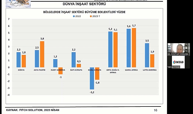 Her ay yayımladığı raporlarla yapı sektörünün nabzını tutan Türkiye İMSAD, Dünya ve Türkiye ekonomisinin değerlendirildiği toplantıda sektör paydaşlarıyla bir araya geldi. “Sektörel Ekonomi Gündemi” başlığıyla düzenlenen etkinlikte öngörülerini aktaran Türkiye İMSAD Ekonomi Danışmanı Dr. Can Fuat Gürlesel, Avrupa ve ABD’deki inşaat sektöründe küçülme beklentisi olduğunu söyledi ve Türkiye’deki inşaat malzemeleri ihracatının büyük bir bölümünün bu bölgeleri kapsadığına dikkat çekti.