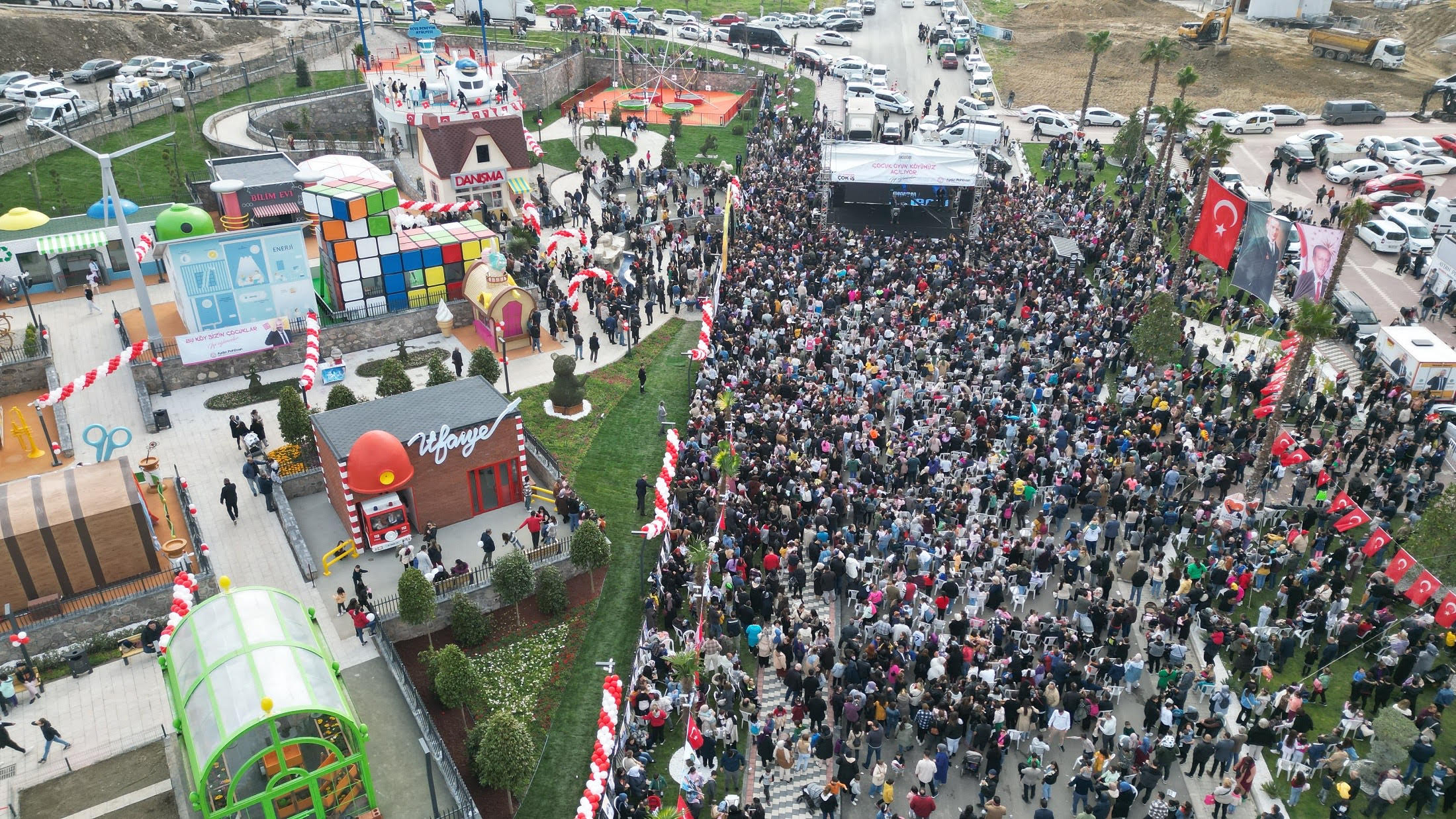 Menemen Belediyesi, ilçedeki açılışlarına bir yenisini daha ekledi. Mart ayı boyunca yapacağı seri açılışlara 2 bin metrekarede bölgenin en büyüklerinden olan fitness salonu ve Çukurköy’deki toplu açılışla başlayan Menemen Belediyesi, Ulukent’te Türkiye’nin en büyük tematik çocuk oyun köyünün açılışını gerçekleştirdi. 10 bin metrekarelik alanda içinde tarımdan matematiğe, müzikten ahşap atölyesine kadar hem eğlendiren hem de öğreten birçok nitelik barındıran tematik çocuk köyünün açılışına ilgi çok yoğun oldu. Etkinliğe Menemen Belediye Başkanı Aydın Pehlivan ve Cumhur İttifakı İzmir Büyükşehir Belediye Başkan Adayı Hamza Dağ ile birlikte Menemen ve çevre ilçelerden birçok aile, çocuklarıyla birlikte katıldı. TRT’nin sevilen çocuk yapımı olan Rafadan Tayfa etkinliğinin de yer aldığı açılışta, çocuklara patlamış mısır pamuk helva gibi ikramlar dağıtıldı.