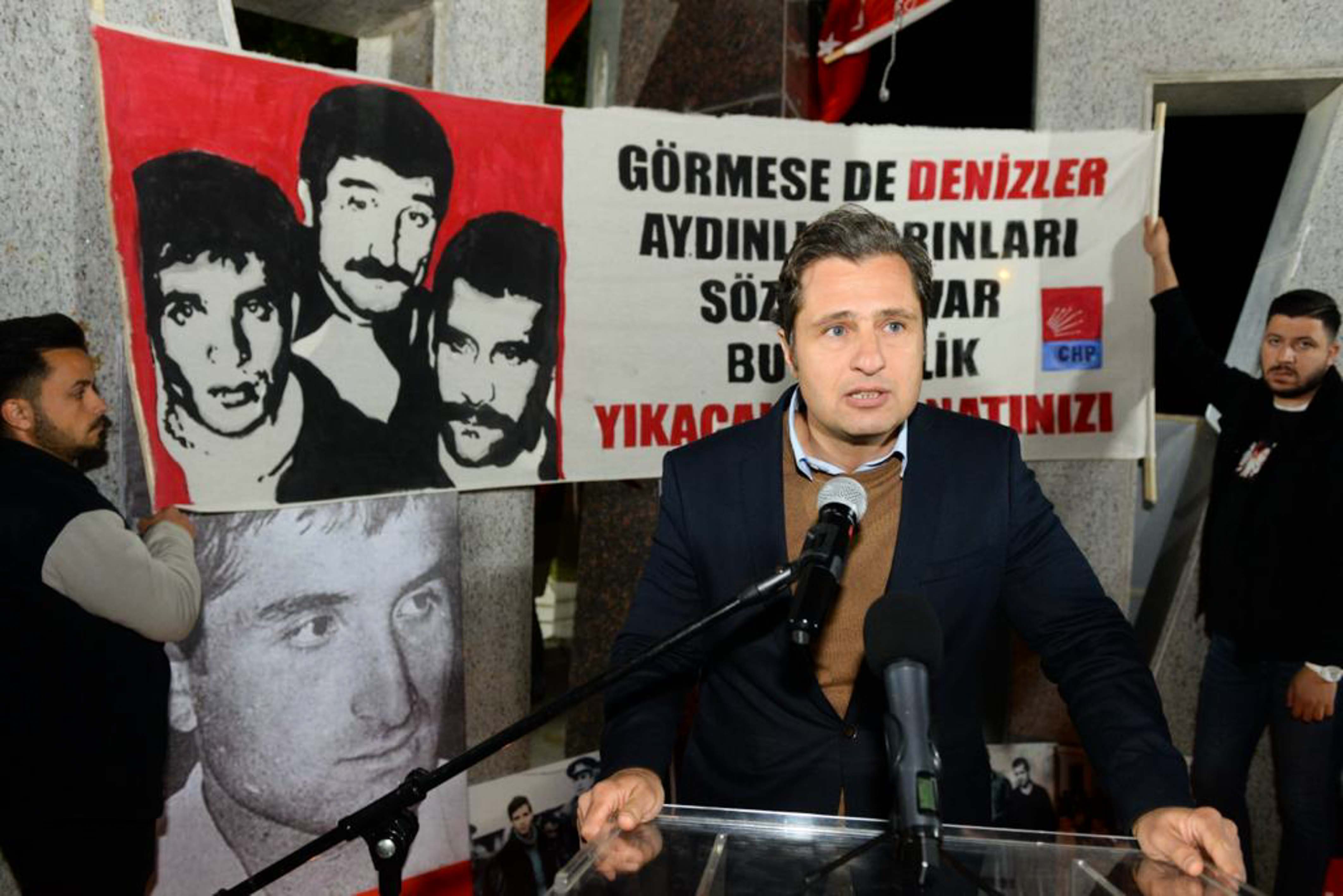 BU ÜLKEYİ HAK ETTİĞİ GÜNLERE KAVUŞTURACAĞIZUmudun, hakkın ve halkın mücadelesinin aynı kararlılıkla sürdüğünü belirten Başkan Kılıç, “Az kaldı; bu topraklara yine baharlar gelecek. Güneş yeniden yeryüzünü ısıtacak, gök mavi rengine kavuşacak. Deniz’e, Yusuf’a, Hüseyin’e selam olsun; bu ülkeyi hak ettiği güzel günlere kavuşturmak da sözümüz olsun” diye konuştu.CHP İL BAŞKANI ASLANOĞLU KONUŞMA YAPTIBaşkan Kılıç’ın ardından söz alan CHP İl Başkanı Şenol Aslanoğlu , lise yıllarında okuduğu bir kitap sayesinde Deniz, Hüseyin ve Yusuf ile tanıştığını, solcu olmasında onların hayat hikayelerinin etkili olduğunu belirterek “ Yaşamlarını okuyan binlerce gencin hayatını değiştirdiler. Onlardan, ‘Tam bağımsız Türkiye’ şiarlarından, vatan doğru olarak nasıl sevilir öğrendik. Bizler mücadele etmekten hiç vazgeçmedik. Ne saraylar saltanatlar bizi satın aldı, ne onların önünde diz çöktük. Bu mücadele bizden sonra gençlerle devam edecek. Anıları yolumuza ışık olacak” diye konuştu.IŞIK OLDULARAnma töreninde bir konuşma yapan CHP Buca İlçe Başkanı Hacer Taş Gültepe, üç fidandan miras olarak aldıkları ‘aydınlık yarınlar’ hayalini gerçekleştireceklerini söyleyerek; “Anıları mücadelemizin ışığı olsun” dedi.BİZLERE GÜÇ VERİYORLARDemokrasi, eşitlik ve adalet için bir mücadele verdiklerini belirten CHP İzmir Milletvekili adayı deniz yücel ise “Bu mücadelede bize güç veren, bize ilham veren, kararlılığımızı artıran Deniz Gezmiş’e , Hüseyin İnan’a ve Yusuf Aslan’a bir borcumuz var. Onların bize devrettiği bayrağı sonuna kadar savunmak ve onların mücadelelerini başarıya kavuşturmak zorundayız. Bugün o aydınlık günlere çok az kaldı. Ama mücadele yine de bitmeyecek. Gerici zihniyetle, baskıcı, otoriter, faşist anlayışla; demokrasiyi, adaleti, eşitliği, özgürlüğü savunanların mücadelesi hiçbir zaman bitmeyecek” diye konuştu.