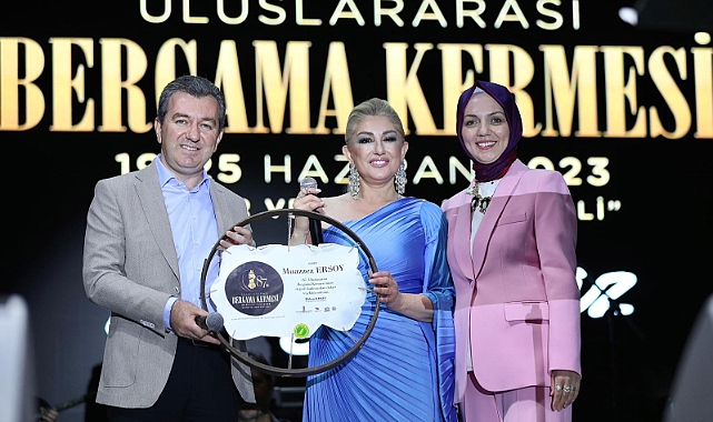 87. Uluslararası Bergama Kermes Festivali’nin son gününde Cumhuriyet Meydanı'nda sahne alan muazzez ersoy muhteşem bir konser verdi. Final konserini 18 bin kişi izledi.Yılların eskitemediği billur sesi ile sevenlerine sanat dolu bir akşam yaşatan Muazzez Ersoy'a Parşömen'den yapılan plaket veren Başkan Hakan Koştu, kermes finalindeki muhteşem konser için teşekkür etti.BAŞKAN KOŞTU'DAN KERMES FESTİVALİNDE HERKESE TEŞEKKÜRMuazzez Ersoy konserinin sonunda sahneye çıkan Bergama Belediye Başkanı Hakan Koştu, "Son yılların en kalabalık en coşkulu kermes festivalini doyasıya hemşehrilerimiz, İzmir şehir merkezi başta olmak üzere çevre il ve ilçelerden gelen vatandaşlarımızla dolasıya yaşadık. Atatürk’ten emanet, Bergama Kermes Festivalimiz kuşaktan kuşağa aktarılarak yaşamaya, sonsuza kadar sürdürülmeye devam edecektir. Bir hafta süren festivalimizi bu akşam muhteşem bir şekilde sonlandırdık. Kermesimizi coşku ile yaşayan, iyi duygularını ileten tüm hemşehrilerime ve festivalimizin sorunsuz bir şekilde yapılmasında emeği olan herkese, festivalimize renk katan sanatçılarımıza, halk oyunları ekiplerimize, misafirlerimize, güvenlik güçlerimize, protokol üyelerimize teşekkür ederim" dedi.