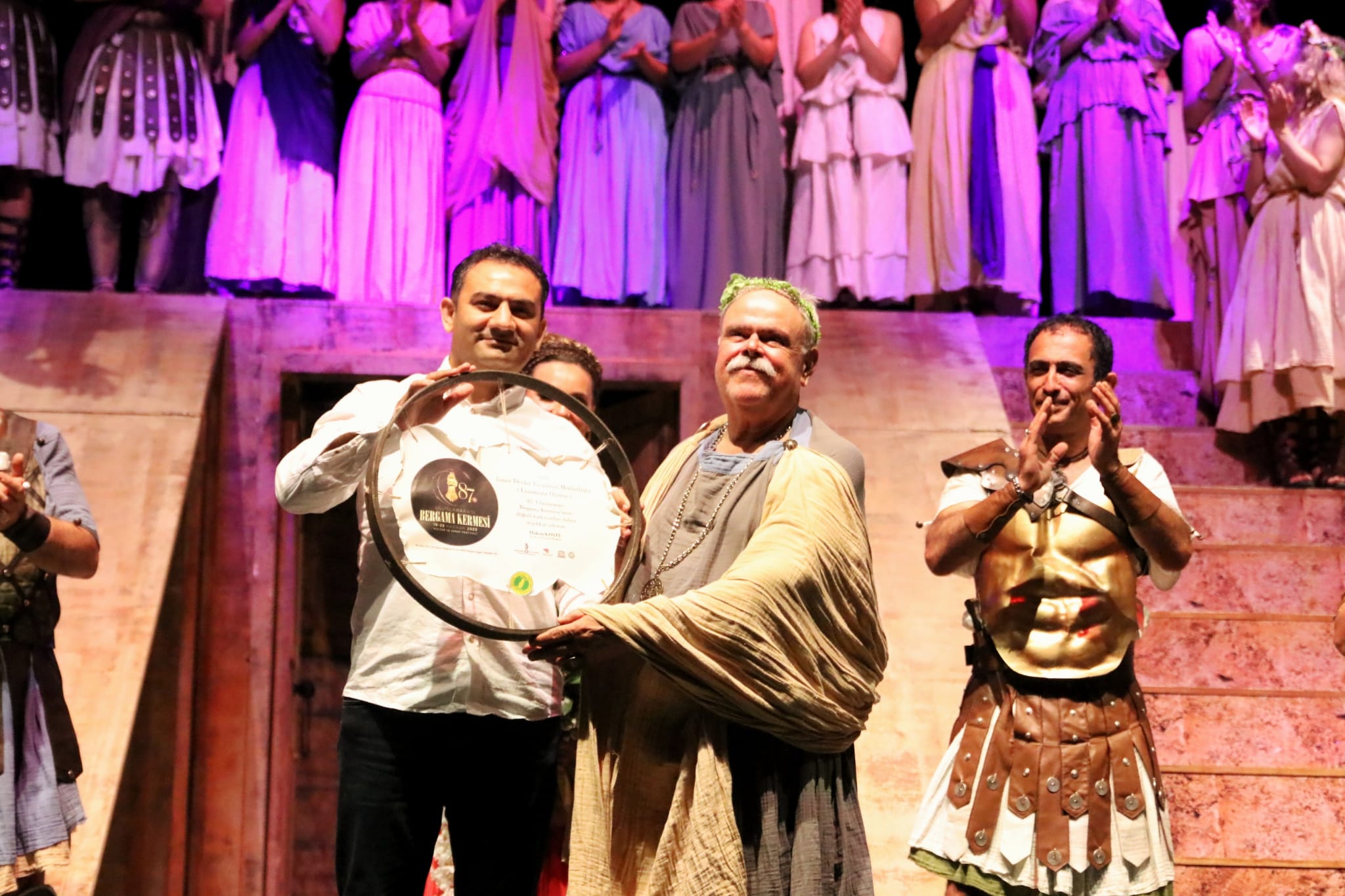 ASKLEPİON TİYATRO’YA EV SAHİPLİĞİ YAPTIBergama Kermes Festivali kapsamında son gün tiyatroya ev sahipliği yaptı. Asklepion Antik Tiyatro'da Aristophanes'in yazdığı, Ergun Sav'ın çevirisini yaptığı "Lysistrata" adlı Müzikli-Komedi oyunu ile sahne alan İzmir Devlet Tiyatrosu, sanatseverlere harika bir akşam yaşattı.Oyunun ardından Yönetmen Sadri Özmener'e sanatçılar adına Parşömen'den yapılan plaketi Belediye Başkan Yardımcısı Cemil Ferah verdi. Yönetmen Özmener jest yaparak plaket ve çiçeği tiyatronun sanatçıları ile paylaştı.BERGAMA KERMES FESTİVALİ’NİN DEĞİŞMEYEN KLASİĞİ SON GÜN KOZAK ETKİNLİĞİ87. yıldır aralıksız devam eden Uluslararası Bergama Kermes Festivali’nin değişmeyen bir klasiği olarak hafızalarda yer edinen son gün Kozak etkinliği, Türk Halk Müziği Gamze Matracı Konseri, halk oyunları gösterileri ile tamamlandı. Kozak Yaylası’nın güzel havası ve fıstık çamları altında gerçekleştirilen etkinliğe katılan vatandaşlar hem piknik yaptılar, hem de gönüllerince müzik dinleyip, halk oyunları gösterilerini seyrettiler.