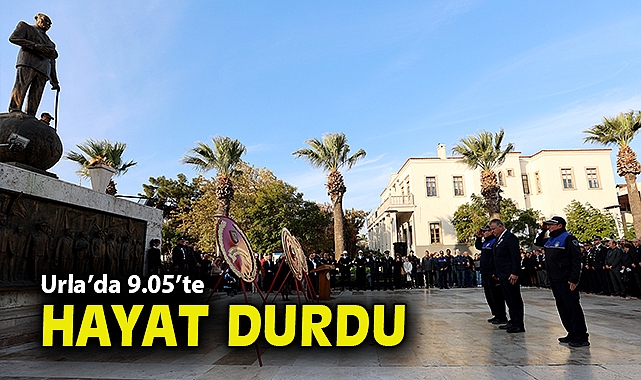 öğrenciler ve Urla halkı katıldı. Anma programı, Urla Cumhuriyet Meydanı’nda çelenk sunma töreni ile başladı. Çelenk sunma töreninin ardından saat 09:05’te Urla’da hayat durdu, sirenler ve klaksonlar eşliğinde 2 dakikalık Saygı Duruşunda bulunularak, İstiklal Marşımız okundu ve gönderdeki Türk Bayrakları yarıya indirildi.