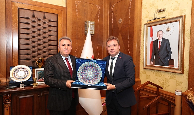 Başkan Demirezen, Vali Elban’a bir hediye plaketi sundu.