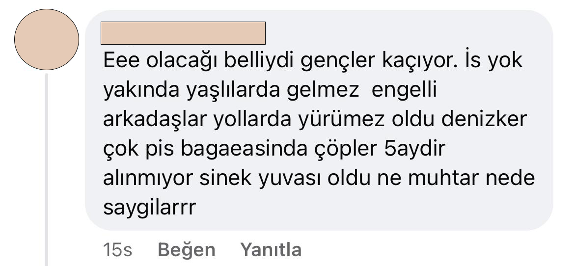 NE DERLER GELEN GİDENİ ARATIRMIŞGelenin gideni aratacağını ifade eden bir diğer vatandaş ise, “Çok yazık böyle güzel bir ilçeden. Ne kadar olumsuz şeyler duyuyoruz çok üzülüyorum. Ne derler gelen gideni aratırmış” ifadelerini kullandı.FOTOĞRAF PAYLAŞIYOR DA ALLAH'TAN YÜZÜNÜ GÖREBİLİYORUZBaşkan Fıçı’yı sadece sosyal medya hesabından paylaştığı fotoğraflardan görebildiklerini ifade eden bir vatandaş ise, “Yooo bir şey yapacağı da yok. Bol bol fotoğraf paylaşıyor da Allah'tan yüzünü görebiliyoruz” paylaşımında bulundu.NE BAŞKAN VAR NE DE PROJEBaşkan Fıçı’nın ve projelerin olmadığını ifade eden bir diğer vatandaş ise, “Ne başkan var ne de proje” ifadelerini kullandı.OY VERDİM VERMEZ OLAYDIMFoça Belediyesi’nin sahildeki işletmelerinin damsız müşteri almadığını ifade eden bir diğer vatandaş ise, “Proje var. Belediyenin sahildeki işletmeleri damsız almıyor. Ben oy verdim vermez olaydım” paylaşımında bulundu.